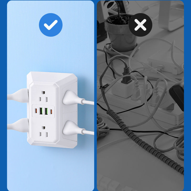 COMPACT WALL-MOUNT DESIGN - Plugs directly into your wall outlet without extra cords. Its space-saving cube shape keeps your desktop and floor area tidy and organized, transforming a single outlet into a powerful and versatile station.