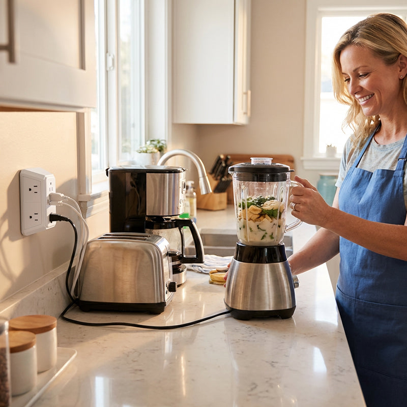 10-IN-1 POWER HUB - Power all your desktop devices at once from a single, compact hub. It combines 6 AC outlets, 2 USB-A, and 2 USB-C ports, eliminating the need for multiple bulky chargers.
