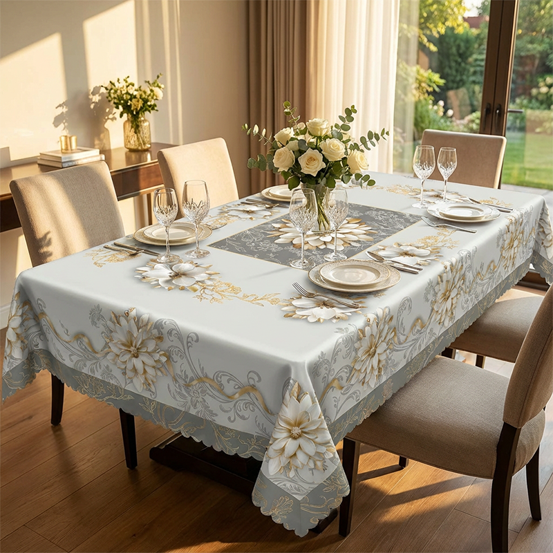 DURABLE POLYESTER FABRIC - Crafted from high-quality polyester, this tablecloth is resistant to wrinkles and shrinking. It offers long-lasting durability, ensuring it remains a beautiful centerpiece for your table through countless meals and celebrations.